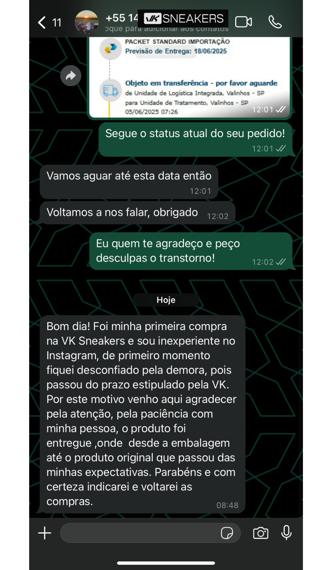 VK Sneakers é uma empresa séria e comprometida com o que faz. Trabalhamos com honestidade, transparência e sempre buscamos evoluir para oferecer a melhor experiência de compra. Nosso objetivo nunca foi e nunca será lesar qualquer cliente, mas sim entregar um serviço de qualidade e confiança.